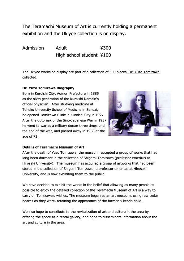 The Teramachi Museum of Art is currently holding a permanent exhibition and the Ukiyoe collection is on display.