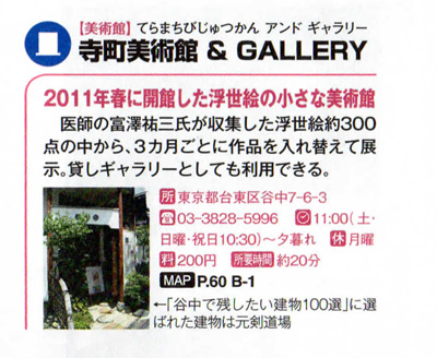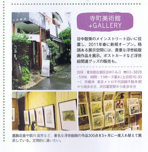 都心部にある数少ない情緒溢れる場所で、浮世絵という芸術文化に触れられるのが寺町美術館です。